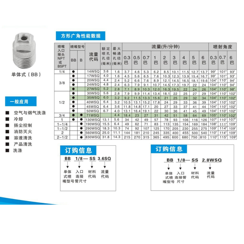 4、 BB系列金屬噴嘴為外螺紋接頭,B系列金屬噴嘴為內(nèi)螺紋接頭